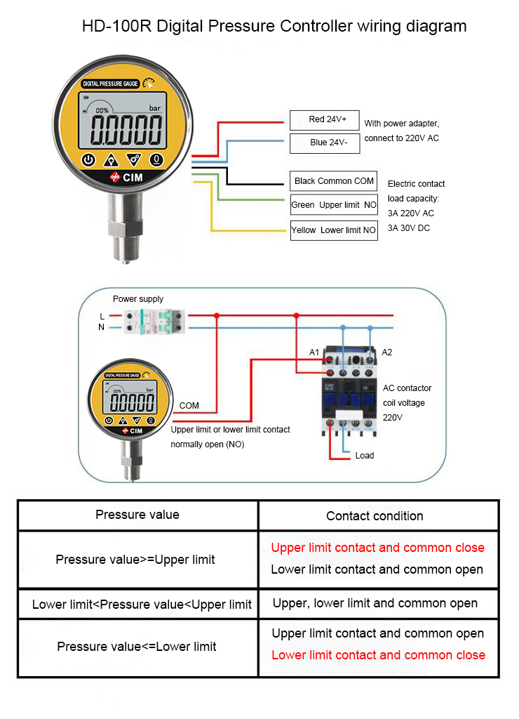 Intelligent digital pressure gauges are already widely used smart instruments. Among them, the digital pressure controller can completely replace the traditional electric contact pressure gauge, and is superior to the traditional electric contact pressure gauge in terms of control accuracy and reliability. Today we will introduce to you the wiring method of the intelligent digital pressure gauge/digital pressure controller for your convenience. You can also contact us at any time if you have any questions during use.